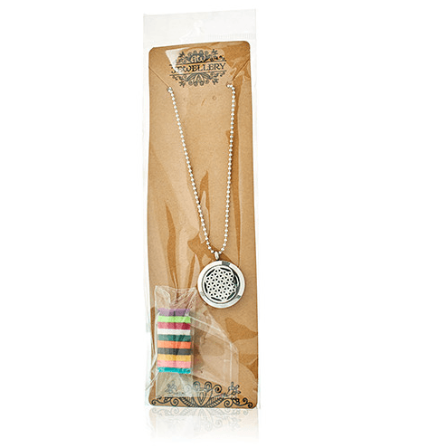 Te aromaterapevtske ogrlice z difuzorjem omogočajo, da nosite vaše najljubše eterično olje ali eno od naših posebnih mešanic, kadarkoli v dnevu. Izkoristite pozitivne koristi eteričnih olj kamorkoli greste. Vsak obesek vsebuje majhen kos blazinice, ki vsebuje nekaj kapljic olja, ki se počasi razprši skozi prezračevalne luknje na sprednji strani. Vonj vašega olja lahko traja več dni. Priporočljivo je, da dodajate eterično olje na blazinico, ko se olje popolnoma razprši. Obeski so na voljo v dveh velikostih s premerom 25 mm in 30 mm ter debelino 5 mm in so izdelani iz nerjavečega jekla, ki zagotavlja, da olja sčasoma ne potemnijo ali razgradijo kovine. Vsaka ogrlica je opremljena z 10 različnimi barvnimi blazinicami.